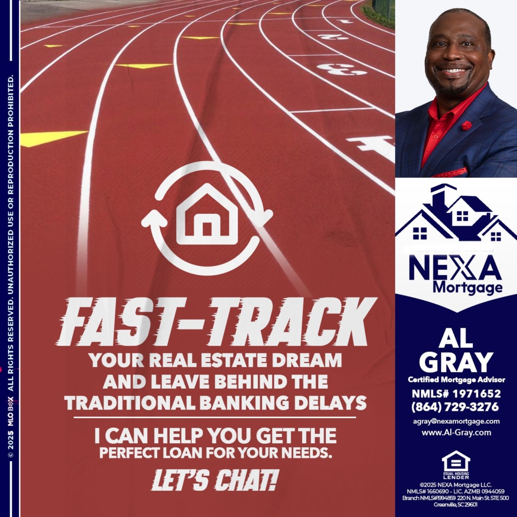 Hi, my name is Al Gray. I’m a Loan Officer with NEXA Mortgage LLC., offering personalized mortgage solutions, fast customized quotes, great rates and service with integrity.