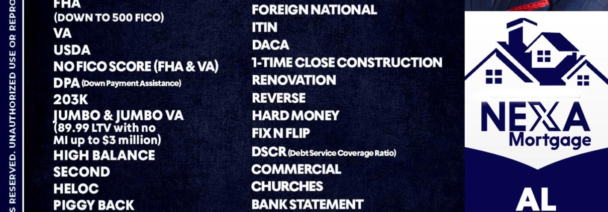 Hi, my name is Al Gray. I’m a Loan Officer with NEXA Mortgage LLC., offering personalized mortgage solutions, fast customized quotes, great rates and service with integrity.
