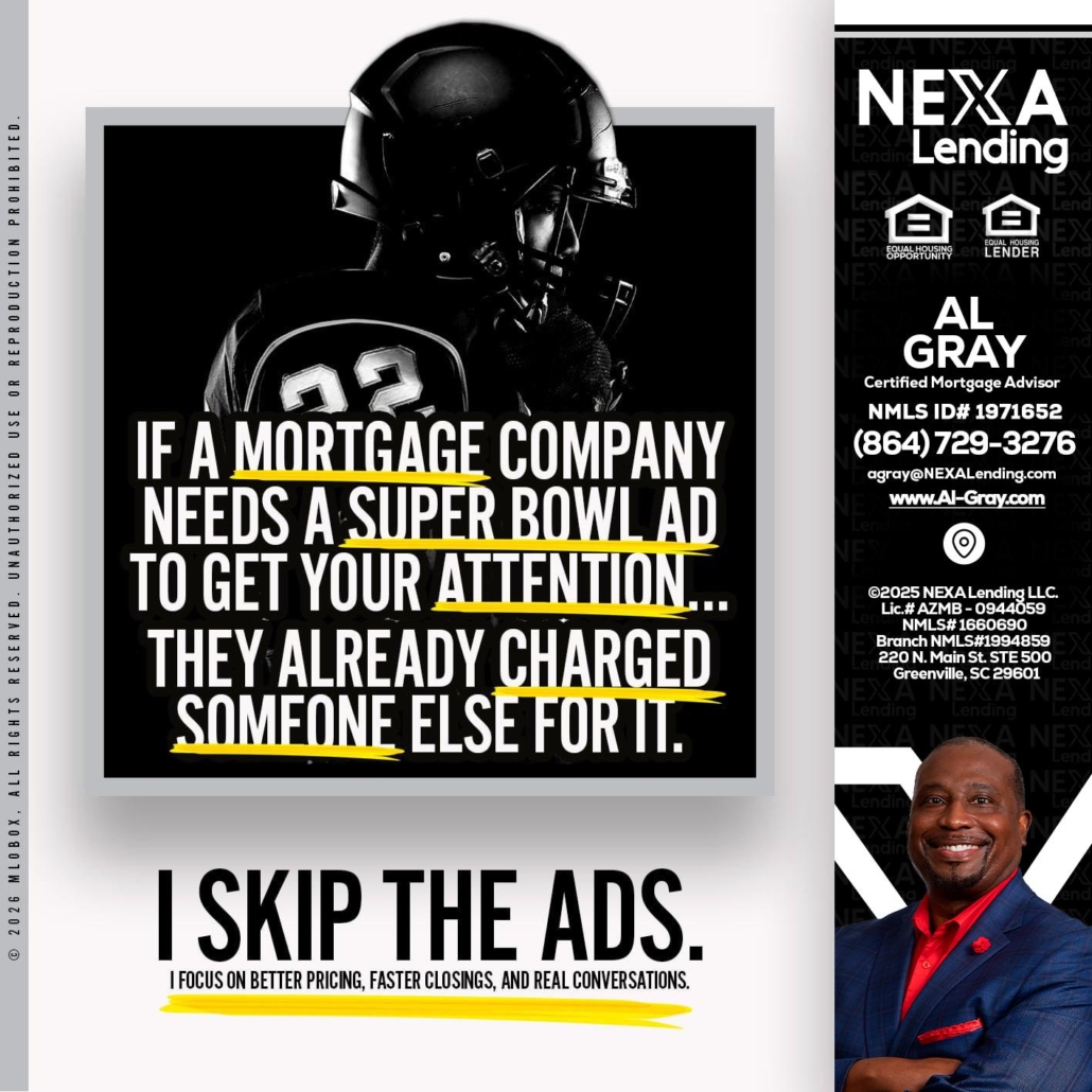 Hi, my name is Al Gray. I’m a Loan Officer with NEXA Mortgage LLC., offering personalized mortgage solutions, fast customized quotes, great rates and service with integrity.