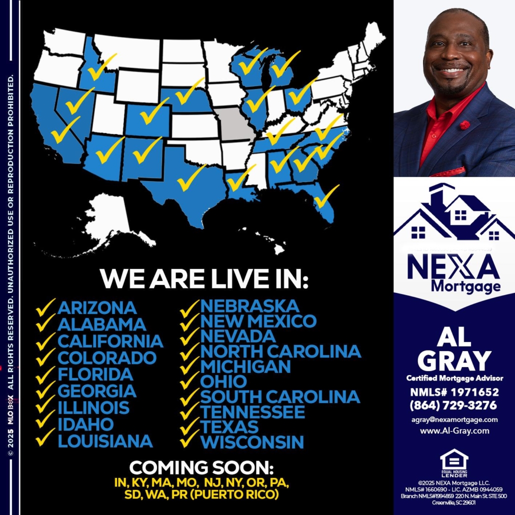 Hi, my name is Al Gray. I’m a Loan Officer with NEXA Mortgage LLC., offering personalized mortgage solutions, fast customized quotes, great rates and service with integrity.
