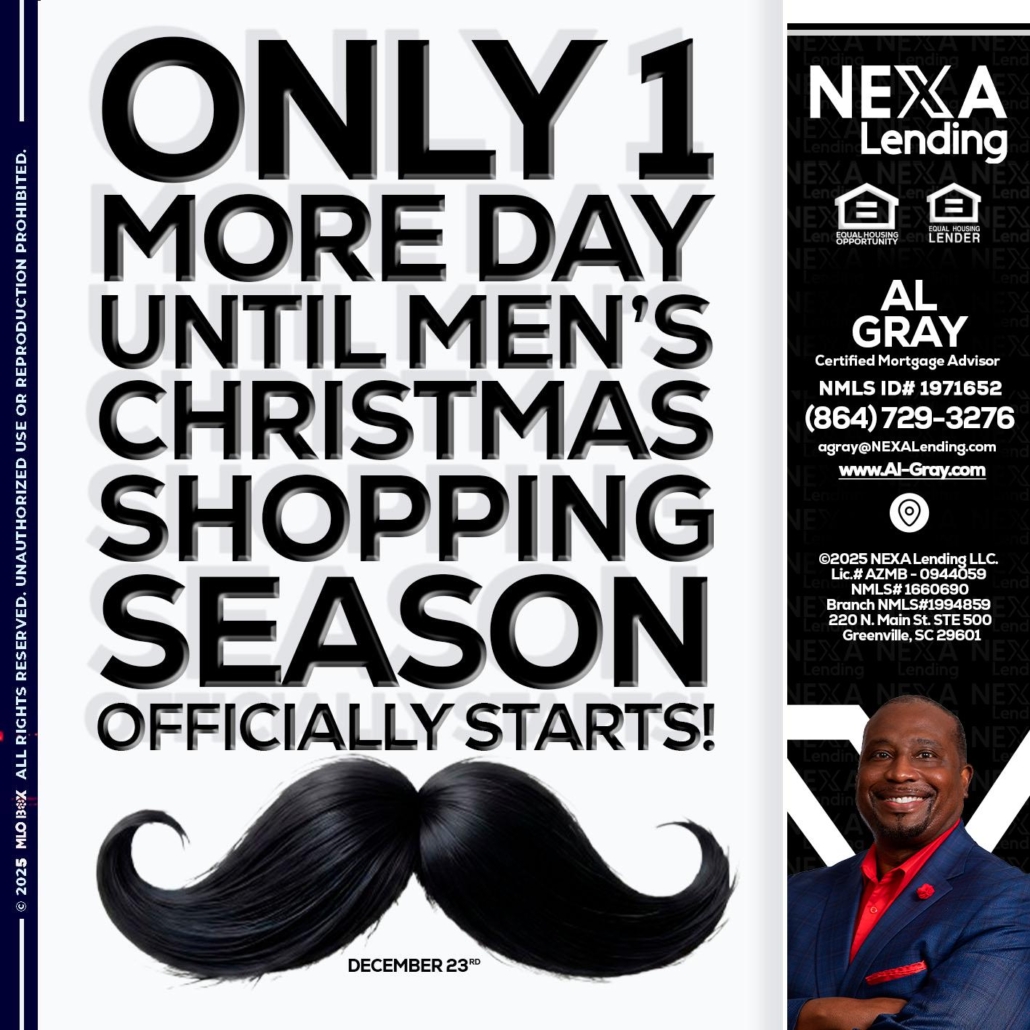 ONLY 1 DAY - Al Gray -Loan OfficerHi, my name is Al Gray. I’m a Loan Officer with NEXA Lending LLC., offering personalized mortgage solutions, fast customized quotes, great rates and service with integrity.