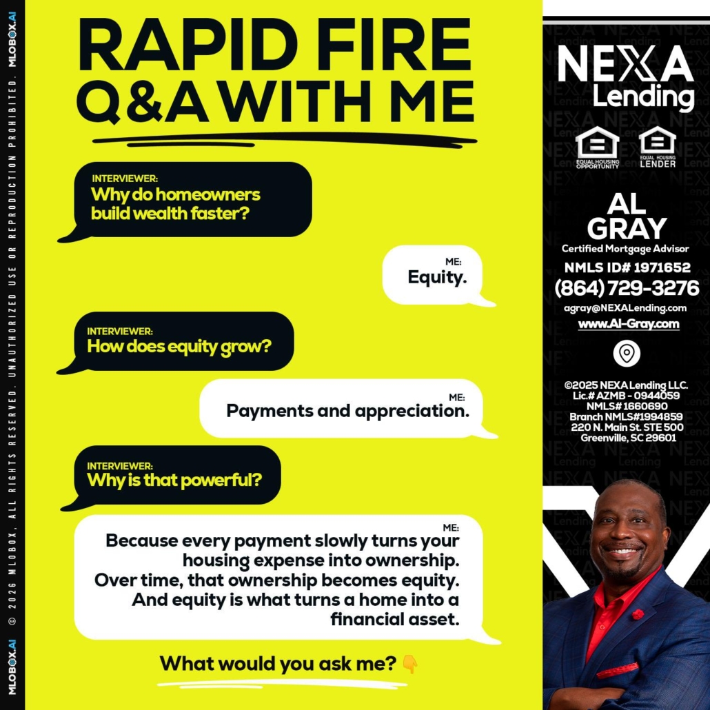 RAPID FIRE Q&A - Al Gray -Branch Mgr/Sr. LOHi, my name is Al Gray. I’m a Loan Officer with NEXA Mortgage LLC., offering personalized mortgage solutions, fast customized quotes, great rates and service with integrity.