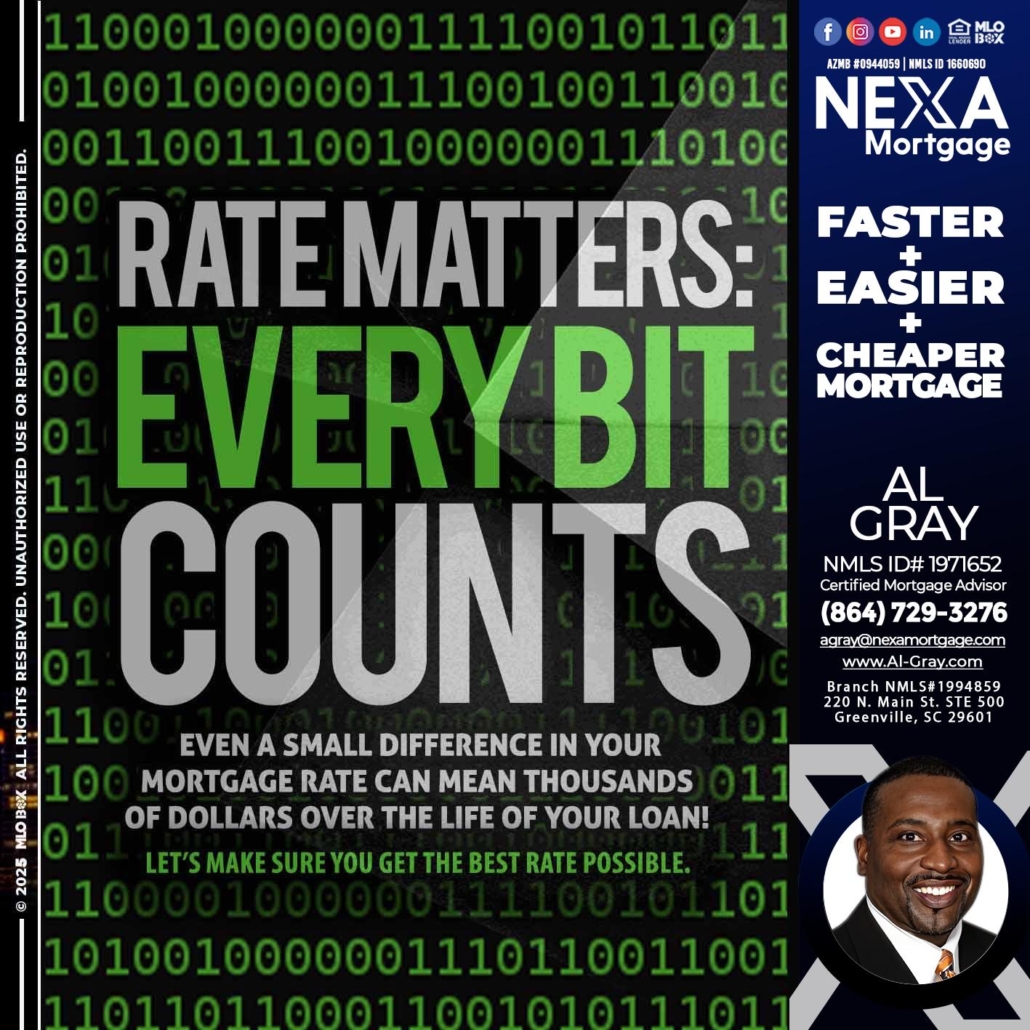 Hi, my name is Al Gray. I’m a Loan Officer with NEXA Mortgage LLC., offering personalized mortgage solutions, fast customized quotes, great rates and service with integrity.