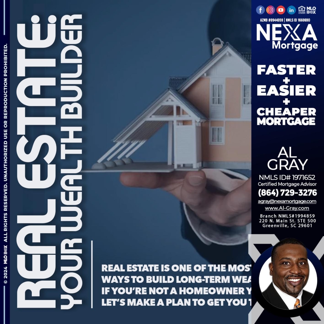Hi, my name is Al Gray. I’m a Loan Officer with NEXA Mortgage LLC., offering personalized mortgage solutions, fast customized quotes, great rates and service with integrity.
