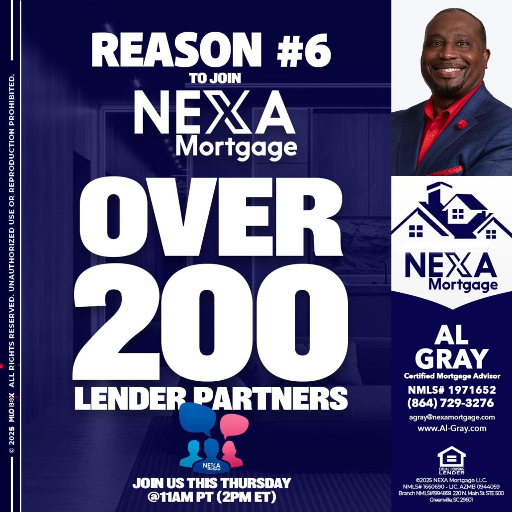 Hi, my name is Al Gray. I’m a Loan Officer with NEXA Mortgage LLC., offering personalized mortgage solutions, fast customized quotes, great rates and service with integrity.