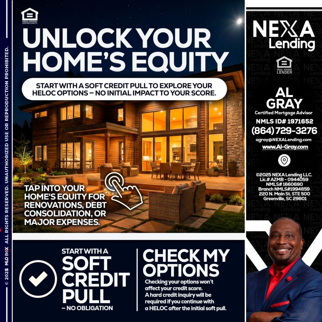 Hi, my name is Al Gray. I’m a Loan Officer with NEXA Lending LLC., offering personalized mortgage solutions, fast customized quotes, great rates and service with integrity.