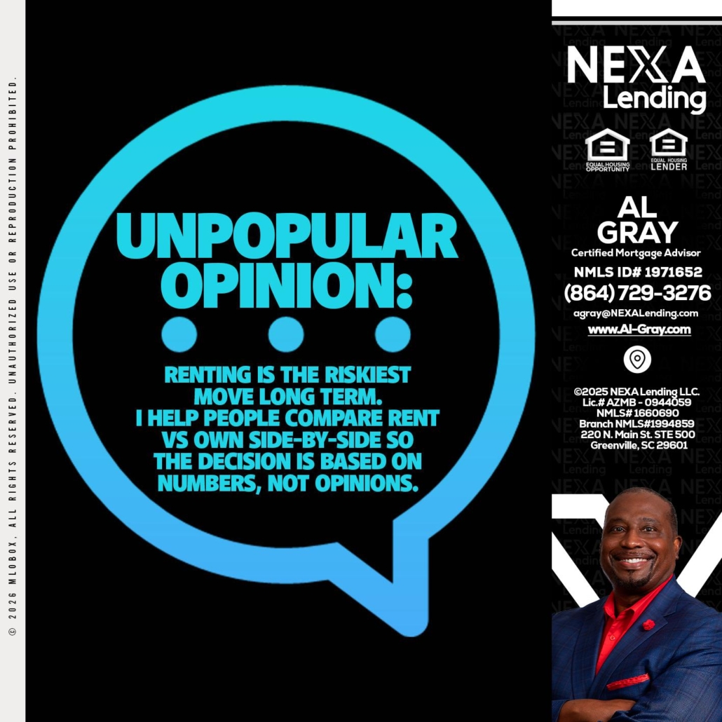 Hi, my name is Al Gray. I’m a Loan Officer with NEXA Mortgage LLC., offering personalized mortgage solutions, fast customized quotes, great rates and service with integrity.