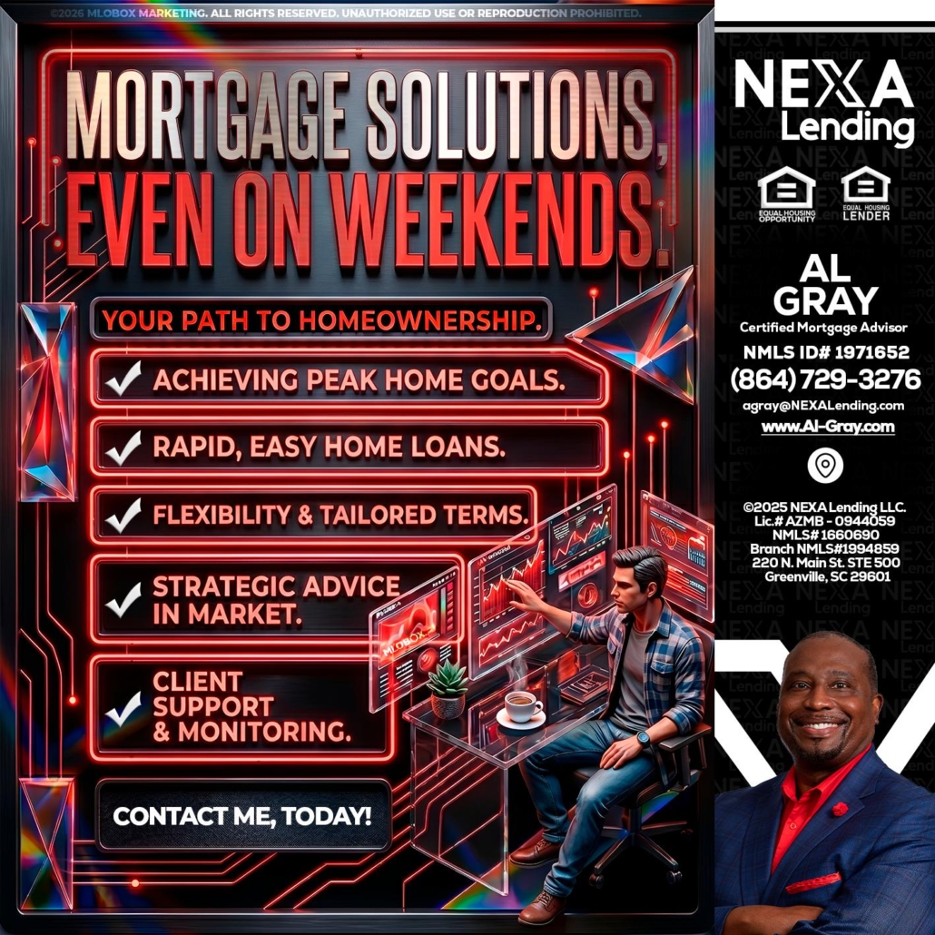 Hi, my name is Al Gray. I’m a Loan Officer with NEXA Lending LLC., offering personalized mortgage solutions, fast customized quotes, great rates and service with integrity.