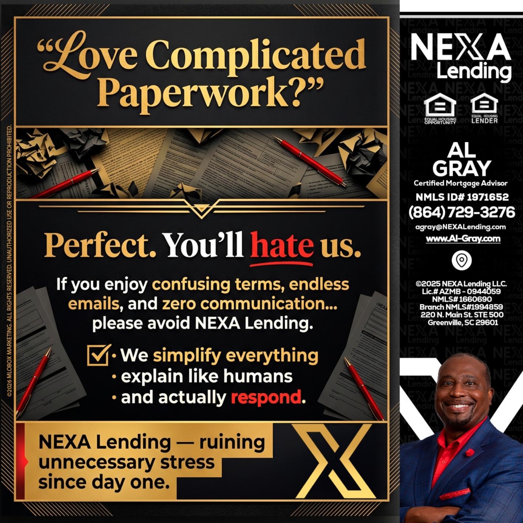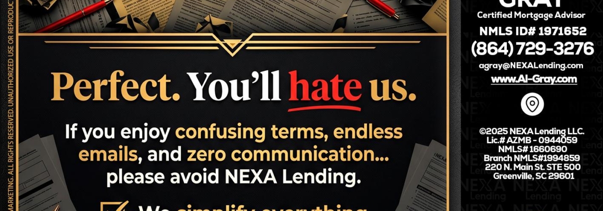 Hi, my name is Al Gray. I’m a Loan Officer with NEXA Lending LLC., offering personalized mortgage solutions, fast customized quotes, great rates and service with integrity.